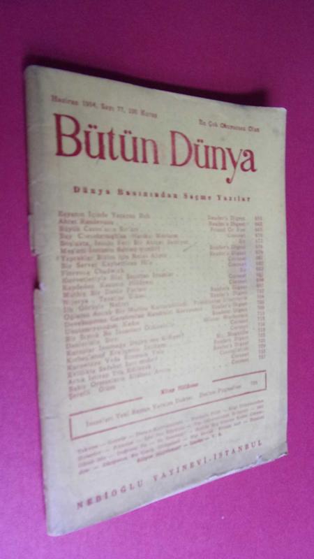 BÜTÜN DÜNYA DERGİSİ SAYI-77.1954, Koletif tarafından kaleme alınmıştır. Kitap 1954 yılında NEBİOĞLU KİTABEVİ tarafından [İSTANBUL] yayınlanmıştır. 116 sayfadır. BÜTÜN DÜNYA DERGİSİ SAYI-77.1954 adlı eser Türkçe dilindedir.