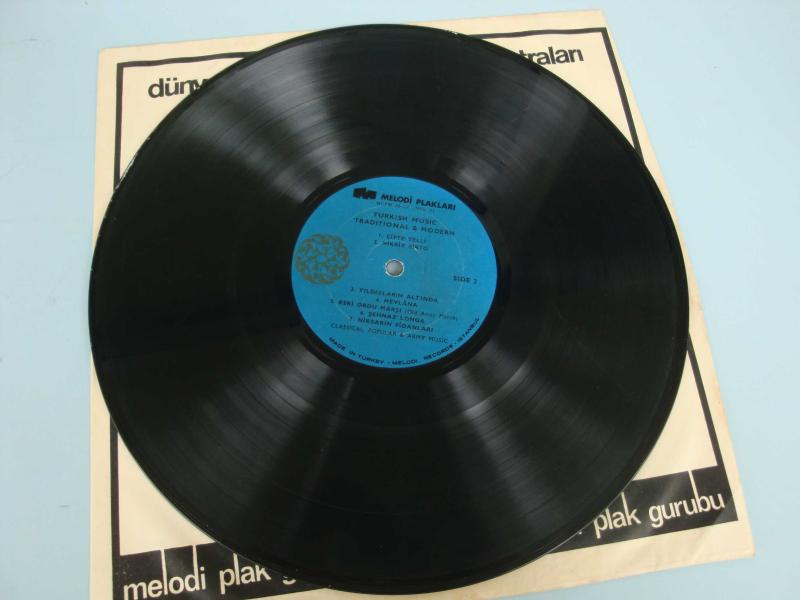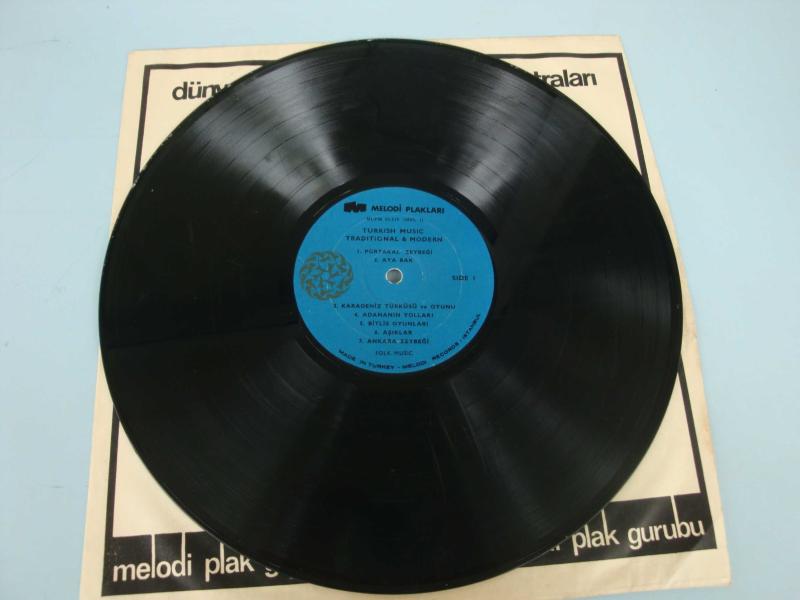 BÜTÜN YÖNLERİYLE TÜRK MÜZİĞİ " Turkish Music Traditional & Modern " LP MELODİ PLAK Kap : Koruma - Plak : 5 / 6 Kap yoktur ( Koruma Kabında Gönderilecektir ) , Plakta yoğun kılcal izler mevcut olup iğne Kondisyonu ve Kol Ağırlık Ayarına bağlı olarak atlama / takılma ve cızırtılar yapabilir ,, ÇOK NADİR bir Plak olup bulunsun diye alınabilir .. Şarkı Listesi : A1 Hüseyin Say– Portakal Zeybeği A2 Unknown Artist– Aya Bak A3 Unknown Artist– Karadeniz Türküsü Ve Oyunu A4 Istanbul Radio Station Chorus*– Adana'nın Yolları A5 Adil Dönmez And Reşit Kaplan– Bitlis Oyunları A6 Mehmet Ali Torun* And Âşık Mustafa*– Âşıklar A7 Adnan Türközü– Ankara Zeybeği B1 Yılmaz Şanlıel And His Friends*– Çifte Telli B2 Unknown Artist– Nikriz Sirto B3 Güngör Esen– Yıldızların Altında B4 Unknown Artist– Mevlâna B5 Istanbul Army Mehter Band– Eski Ordu Marşı B6 Yılmaz Şanlıel– Şehnaz Longa B7 Ayla Dikmen– Niksar'ın Fidanları
