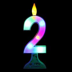 BÜYÜK 2 YAŞ LED IŞIKLI PASTA MUMU 2 YAŞ MUMU MAVİ 2 RAKAM MUM IŞIKLI DOĞUM GÜNÜ MUMU DEV IŞIKLI MUM