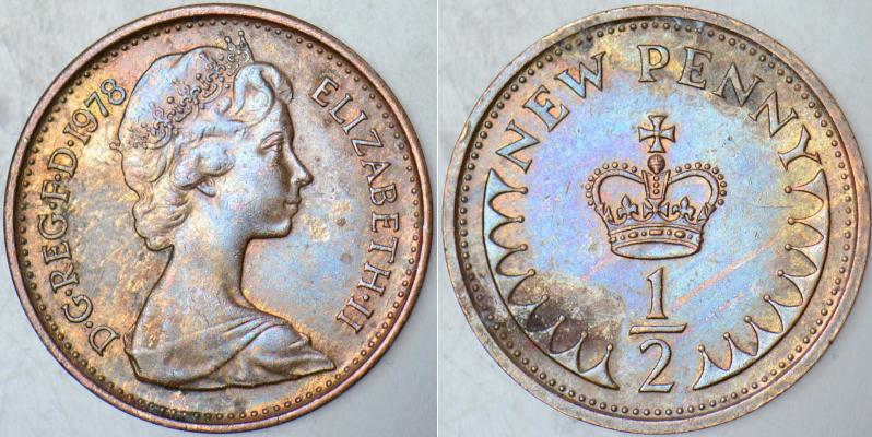 BÜYÜK BRİTANYA YARIM PENNY 1978. KRALİÇE II. ELİZABETH GENÇ BÜST. İNGİLTERE 1/2 HALF PENNY. 17,14 mm ÇAPINDA BAKIR PARA., en son 1 yıl önce güncellenmiştir.