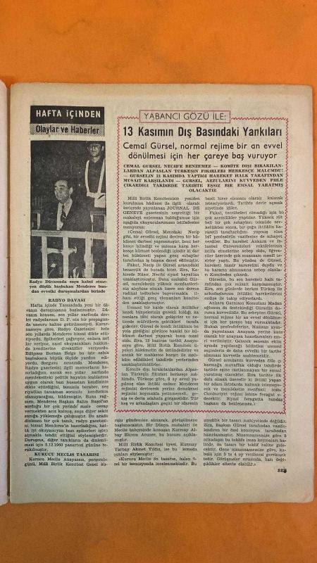 BÜYÜK GAZETE HAFTALIK SİYASİ MAGAZİN MECMUASI DERGİSİ - 31 ARALIK 1960 SAYI: 39/2 — M. FAİZ TURHAN - SAMİYE TURHAN - RIZA OLCAYTO - SÜREYYA ÖZGÖR - REGAT EKREM KOÇU - NACİ SADULLAH DANIŞ - MUHTAR YAZIR - HASAN ŞÜKRÜ ADAL - AZİZ NESİN - NİYAZİ AHMET BANOĞLU - NEVDET RÜŞTÜ EFE - GÜZİN SAYAR - AFİF YESARİ - İSLAM CUPİ - HALUK ŞEVKET - AVAL ANIL - NECATİ CUMALI - ORHAN KEMAL - FÜRUZAN H. TOKİN - SELAHATTİN HILAV - YAŞAR KEMAL - ADNAN VELİ - CENGİZ TUNCER - SENNUR SEZER - HARUN R. İDİL - VALA ÖNENGUT - İRİS KARANFİL - YAŞAR MERİÇ - SÜAVİ SCALP - OSMAN ÖZCAN - BURHAN BELGE - SALİM BAĞOL - EKREM ACUNER - AHMET YILDIZ - ALPARSLAN TÜRKEŞ - CEMAL GÜRSEL - NECİP - NASIR - DOKTOR KENTLİ - BAYUR - BÖLÜKBAŞI - AKIL HASTANESİNDE TEMSİL: HASTALARIN BAŞARILI OYUNU İLGİYLE İZLENDİ - ALTIN ARAYICILARI: “İSTANBUL’UN TAŞI TOPRAĞI ALTIN” SÖZÜNÜN PEŞİNDE - SOPHIA LOREN’İN PASAPORTU: FOTOĞRAFÇININ MERAKLI HAMLESİ - İKİNCİ AF: CEZAEVLERİNDEN TAHLİYE EDİLENLER - RADYO DAVASI: MENDERES’İN PROPAGANDA Y - 44 SAYFA, SAMİYE TURHAN tarafından kaleme alınmıştır. BÜYÜK GAZETE HAFTALIK SİYASİ MAGAZİN MECMUASI DERGİSİ - 31 ARALIK 1960 SAYI: 39/2 — M. FAİZ TURHAN - SAMİYE TURHAN - RIZA OLCAYTO - SÜREYYA ÖZGÖR - REGAT EKREM KOÇU - NACİ SADULLAH DANIŞ - MUHTAR YAZIR - HASAN ŞÜKRÜ ADAL - AZİZ NESİN - NİYAZİ AHMET BANOĞLU - NEVDET RÜŞTÜ EFE - GÜZİN SAYAR - AFİF YESARİ - İSLAM CUPİ - HALUK ŞEVKET - AVAL ANIL - NECATİ CUMALI - ORHAN KEMAL - FÜRUZAN H. TOKİN - SELAHATTİN HILAV - YAŞAR KEMAL - ADNAN VELİ - CENGİZ TUNCER - SENNUR SEZER - HARUN R. İDİL - VALA ÖNENGUT - İRİS KARANFİL - YAŞAR MERİÇ - SÜAVİ SCALP - OSMAN ÖZCAN - BURHAN BELGE - SALİM BAĞOL - EKREM ACUNER - AHMET YILDIZ - ALPARSLAN TÜRKEŞ - CEMAL GÜRSEL - NECİP - NASIR - DOKTOR KENTLİ - BAYUR - BÖLÜKBAŞI - AKIL HASTANESİNDE TEMSİL: HASTALARIN BAŞARILI OYUNU İLGİYLE İZLENDİ - ALTIN ARAYICILARI: “İSTANBUL’UN TAŞI TOPRAĞI ALTIN” SÖZÜNÜN PEŞİNDE - SOPHIA LOREN’İN PASAPORTU: FOTOĞRAFÇININ MERAKLI HAMLESİ - İKİNCİ AF: CEZAEVLERİNDEN TAHLİYE EDİLENLER - RADYO DAVASI: MENDERES’İN PROPAGANDA Y - 44 SAYFA adlı eser Türkçe dilindedir.