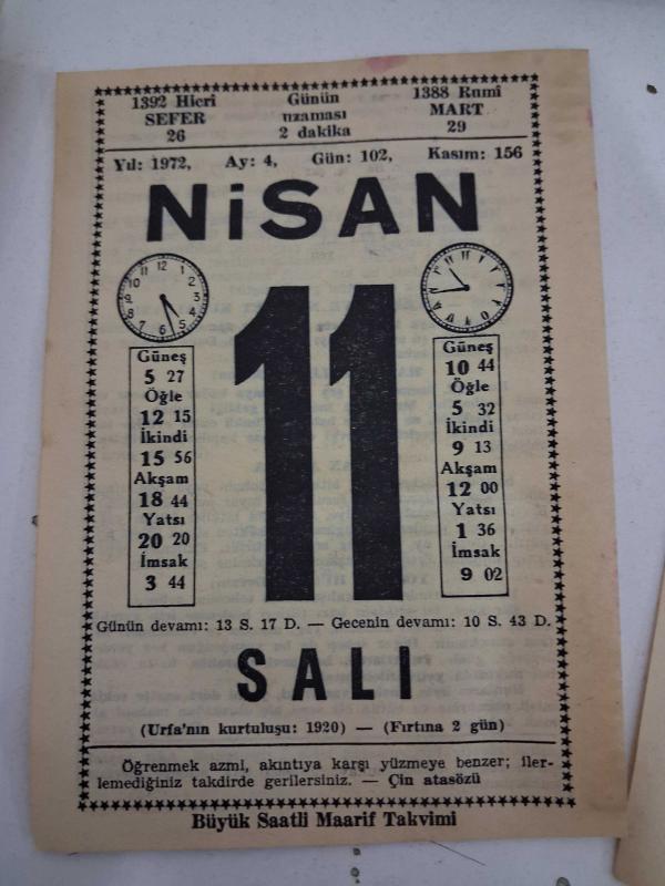 BÜYÜK SAATLİ MAARİF TAKVİMİ 11 Nisan 1972 Salı - TAKVİM YAPRAĞI, en son 15 gün önce güncellenmiştir.