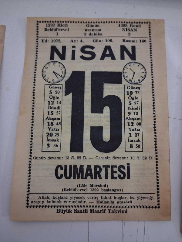 BÜYÜK SAATLİ MAARİF TAKVİMİ 15 Nisan 1972 Cumartesi - TAKVİM YAPRAĞI, en son 14 gün önce güncellenmiştir.