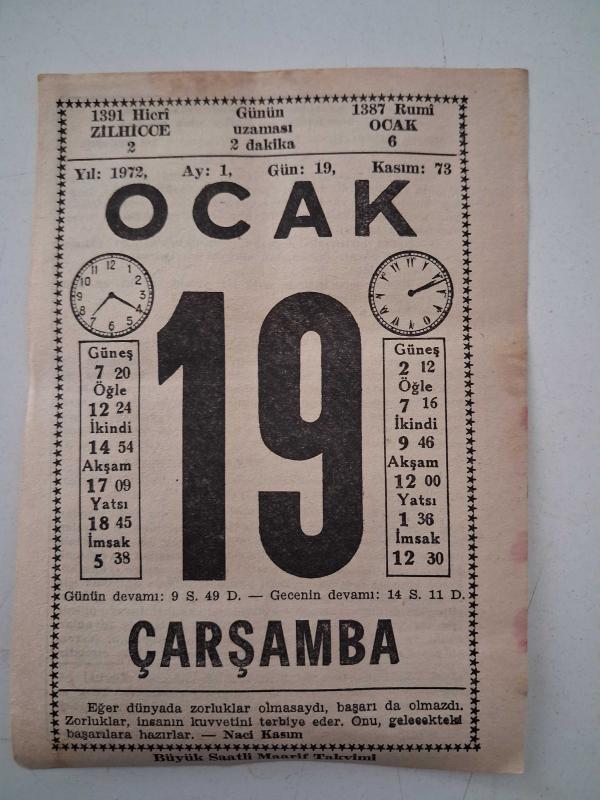 BÜYÜK SAATLİ MAARİF TAKVİMİ 19 Ocak 1972 Çarşamba - TAKVİM YAPRAĞI, en son dün güncellenmiştir.