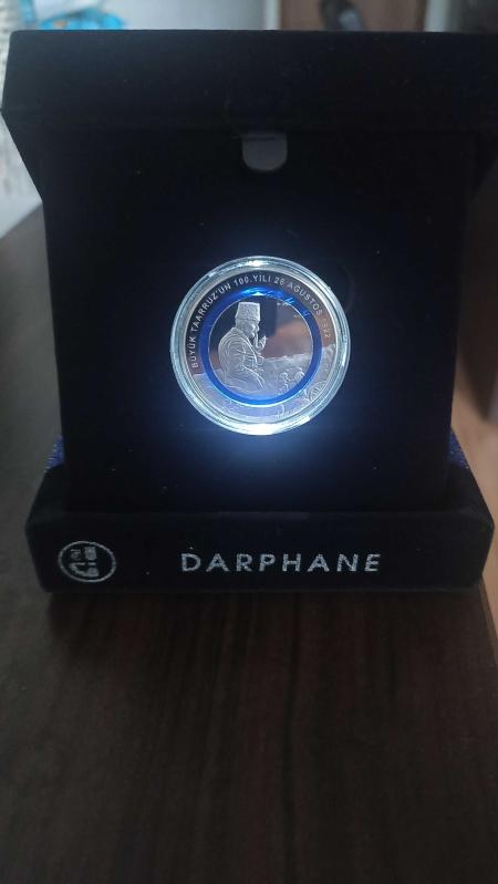 Büyük Taarruzun 100.Yılı Gümüş Mineli Hatıra Parası. Kutusu ile birlikte görseldeki gibi verilecektir. Kutusu orijinal ışıklandırmalıdır.