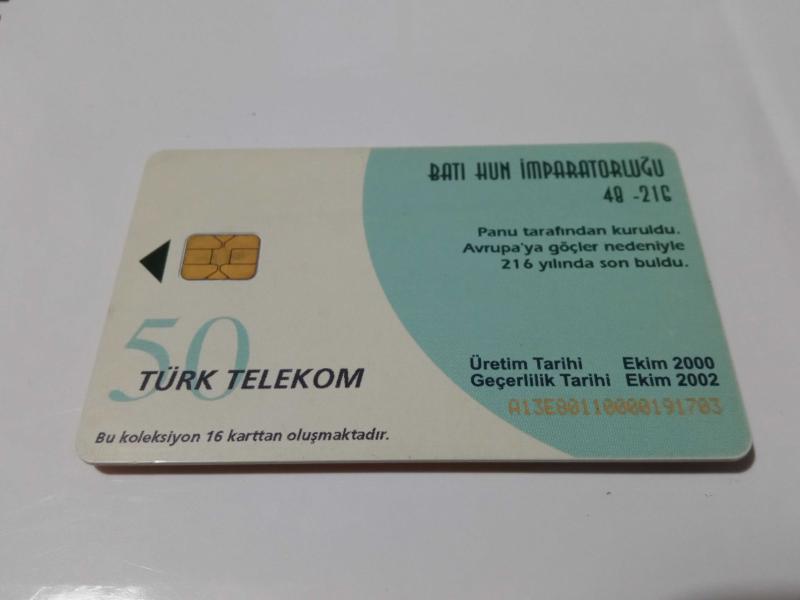 BÜYÜK TÜRK DEVLETLERİ: BATI HUN İMPARATORLUĞU - PANU 48-216 başlıklı ürün, Efemera, Müzik, Sinema > Jetonlar ve Telefon Kartları > Telefon Kartları > Yerli Kartlar kategorisi altında İkinci El olarak satılmaktadır.