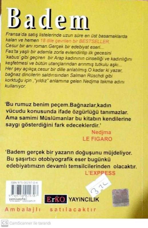 Badem, Nedjma tarafından kaleme alınmıştır. Kitap 2005 yılında Anonim tarafından yayınlanmıştır. 224 sayfadır. Badem adlı eser Türkçe dilindedir.