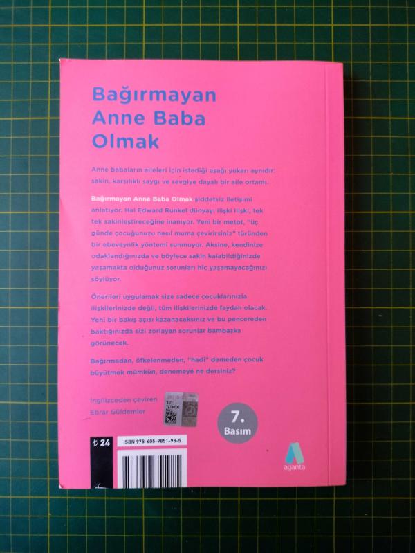 Bağırmayan Anne Baba Olmak (Sakin Kalarak Çocuk Büyütmek), Hal Edward Runkel tarafından kaleme alınmıştır. Kitap 2017 yılında Aganta Yayınları tarafından [İstanbul] yayınlanmıştır. Bu baskının çevirisi Ebrar Güldemler tarafından yapılmıştır. 182 sayfadır. Bağırmayan Anne Baba Olmak (Sakin Kalarak Çocuk Büyütmek) adlı eser Türkçe dilindedir.