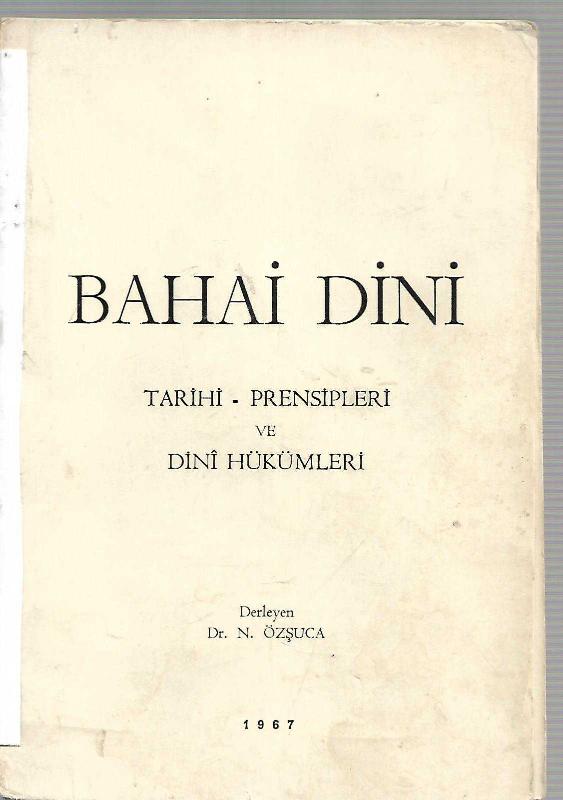 Bahai Dini / Tarihi - Prensipleri ve Dini Hükümleri, Der: N. Özşuca tarafından kaleme alınmıştır. Kitap 1967 yılında BAŞNUR MATBAASI tarafından [Ankara] yayınlanmıştır. 124 sayfadır. Bahai Dini / Tarihi - Prensipleri ve Dini Hükümleri adlı eser Türkçe dilindedir.