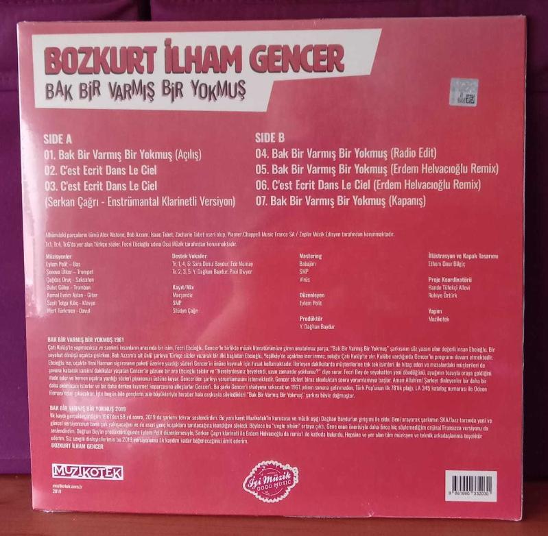 Bak Bir Varmış Bir Yokmuş (Plak+CD) İlham Gencer -Müzikotek 2019 kullanılmamış yeni plak / LP, orijinal jelatinindedir plaklar özenle paketlenir ve plak için uygun kutularda kargolanır kargolama pazartesi, çarşamba ve cuma günleridir Plak İçeriği A1 Bak Bir Varmış Bir Yokmuş (Açılış) A2 C'est Ecrit Dans Le Ciel A3 C'est Ecrit Dans Le Ciel (Serkan Çağrı - Enstrümantal Klarinetli Versiyon) B1 Bak Bir Varmış Bir Yokmuş (Radio Edit) B2 Bak Bir Varmış Bir Yokmuş (Erdem Helvacıoğlu Remix) B3 C'est Ecrit Dans Le Ciel (Erdem Helvacıoğlu Remix) B4 Bak Bir Varmış Bir Yokmuş (Kapanış)