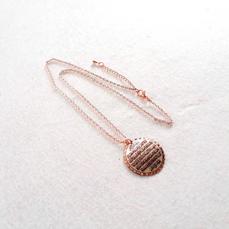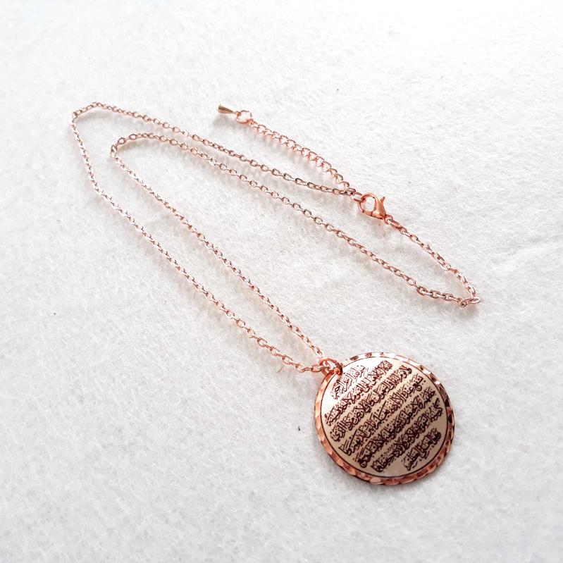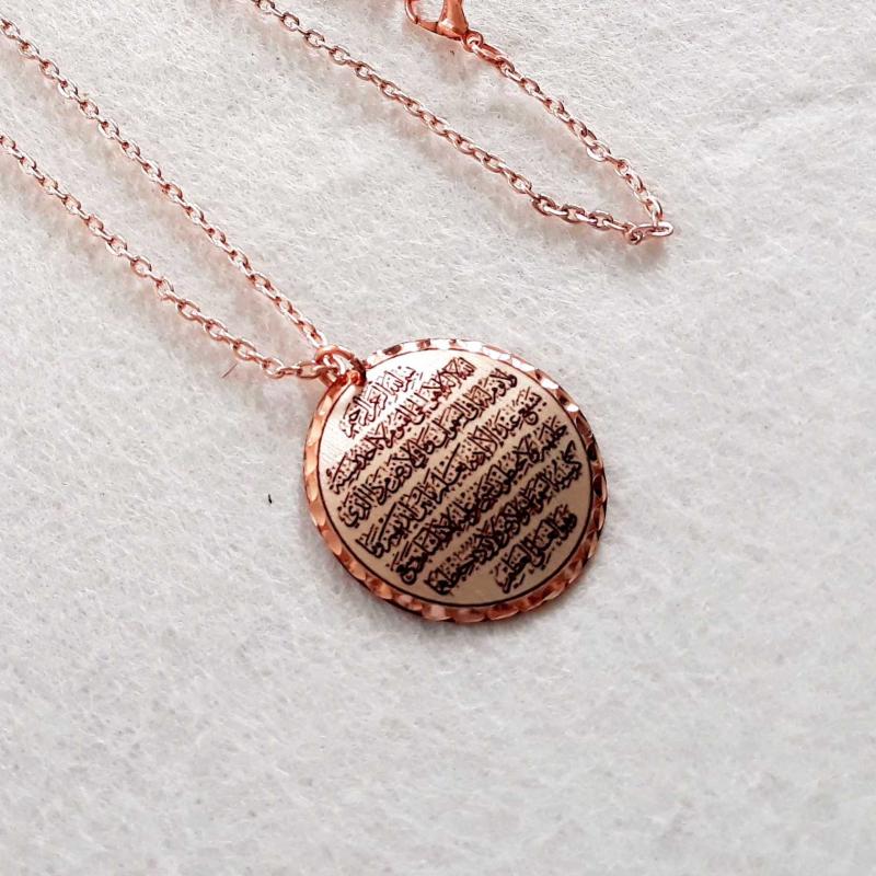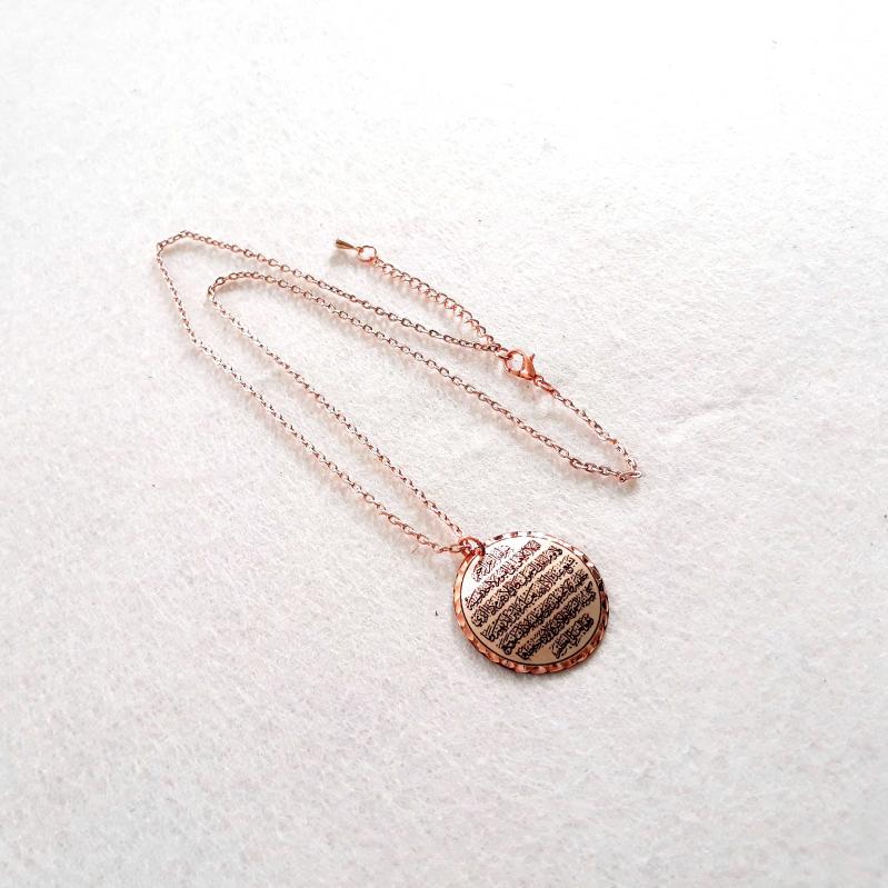 Bakır Elişçilikli Kolye. Arapça hat yazısıyla Ayet El Kürsi Yazılıdır. Üzeri gümüşlüdür.AYT-1, en son 2 gün önce güncellenmiştir.