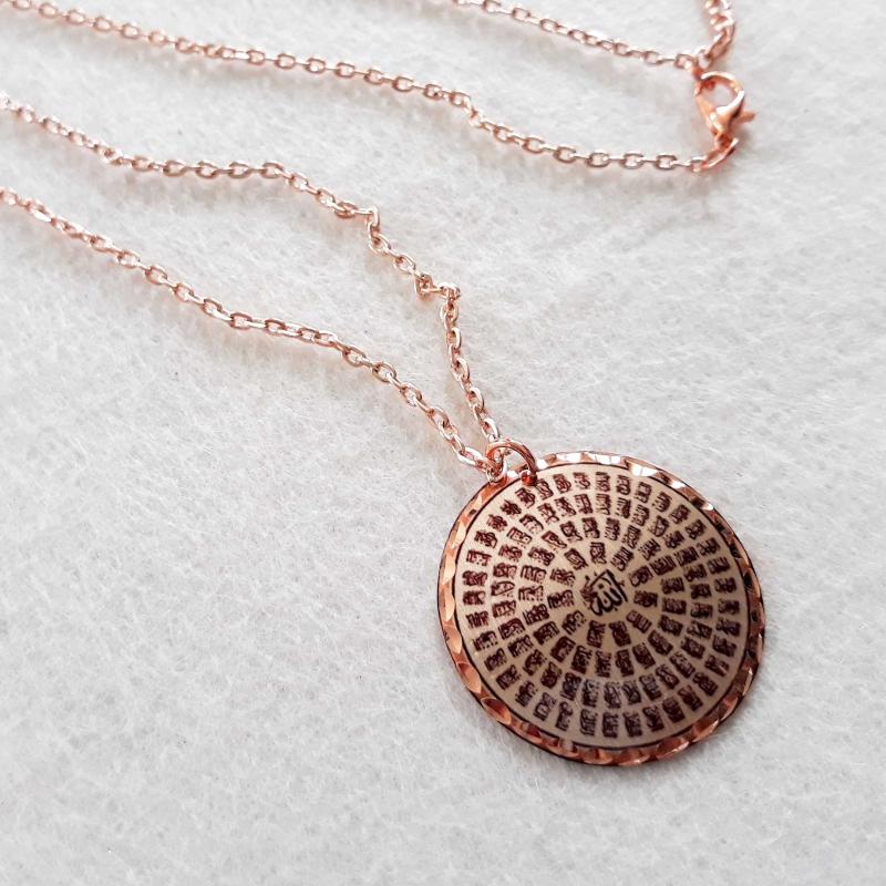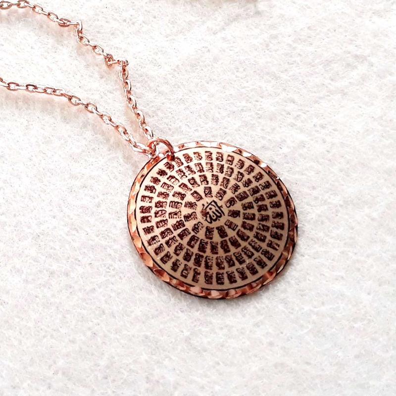 Bakır Elişçilikli Kolye. Arapça hat yazısıyla Esma Ül Hüsna Yazılıdır. Üzeri gümüşlüdür. ESM-1, en son 2 gün önce güncellenmiştir.