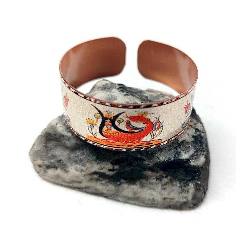 EL YAPIMI İŞÇİLİKLİ BAKIR BİLEZİK / ŞAHMARAN / ÖZEL KORUYUCULUDUR, KARARMAZ.ÜZERİ GERÇEK GÜMÜŞ KAPLAMADIR. PİYASADA BULUNMAZ, KENDİ ÖZEL TASARIMIMIZDIR. / KENARLARI ELMAS KALEM İŞÇİLİĞİ İLE İŞLENMİŞ OLUP PIRILTILIDIR. HEDİYE KUTUSUNDA GÖNDERİLECEKTİR. / KİMYASALLARDAN, SUDAN NEMDEM KORUYUNUZ. ++++++++++++++++++++++++++++++++++++++++++++++++++++++++++++++++++++++ Şahmeran Nedir? Türk, İran ve Anadolu mitolojilerinde rastlanan Şahmeran;akıllı ve iyimser olarak tanımlanan bellerinden üstü insan, aşağısı yılan şeklindeki Maran adı verilen olağanüstü yaratıkların başında bulunur.Hiç yaşlanmadığına ve öldüğündeyse ruhunun kızına geçeceğine inanılır +++++++++++++++++++++++++++++++++++++++++++++++++++++++++++++ Üzerinizde taşıyacağınız bakır bir aksesuar, gün boyunca maruz kaldığınız radyo frekansları ve zararlı manyetik etkileri toparlayıp hızla bedeninizden uzaklaştıracaktır. Çok kuvvetli topraklama etkisi yaparak dingin bir zihne kavuşmanızı sağlayacaktır. Bilim adamlarının görüşleri bileğinde bulunan bileziğin uçlarının kapanmaması gerekiyor çünkü bileziğin kapatılmamış uçları arasında bir manyetik alan oluşuyor. Buda bileziğin manyetik alan yayıcısı olarak çalışmasını sağlar. Bakır ürünlerinin faydalı etkileri bilim tarafından kanıtlanmıştır ve tıbbi uygulamalarda yaygın olarak kullanılmaktadır. Bakırdan yapılmış bir bilezik, bir kişinin doğal biyo-alanını arttırdığı gerçeği, fiziksel yasalarla açıklanmaktadır, bakır bir bilezik sayesinde, vücut manyetik fırtınalara karşı daha dirençli hale gelir( Nazar) . Efekti arttırmak için bileziği dönüşümlü olarak, sonra sağda, sonra sol taraftan takmalısınız. Bu metal, Dünya ile uyum içindedir, insanın doğa ile uyumunu arttırır, bu yüzden insanlar tılsım olarak bileziği kullanır. Bu tür tılsımlar sakinleştirici bir etkiye sahiptir, bileziksiz insanlar strese ve sinir aşırı uyarılmaya karşı daha az dirençlidir. BAKIR BİLEZİĞİN FAYDALARI NEDİR ? ��Kırık kemiklerin kaynamasını hızlandırır. ��Vücut dokusunun yenilenmesinde ve kemik yapısının sağlamlığının artmasında görevli enzimler için gereklidir. ��Alerji ve inflamasyonu kontrol eden histaminaz enziminin görevinde etkilidir. ��Oksijen taşıyıcı görev yapan hemoglobin formasyonunda katalizör görevi görür ve hemoglobine bağlı demirin korunmasında görev alır. ��Çinko ve C vitamininin kullanımı için gereklidir. ��Alyuvarların oluşumuna katkıda bulunur. ��Beyin, sinir sistemi ve bağ dokusu sağlığı için bakır miktarı çok önemlidir. ��Saç ve deri sağlığı için faydalıdır. Çünkü saçtaki keratin dokusu ve pigmentlerin yapımında görevli tirosinaz için bakır gereklidir. ��İşte bakırın taşıdığı bu önem nedeniyle insan vücudundaki miktarı çok önemlidir. ��Bakır bilezik takan kişiye yıldırım çarpmaz ��Nazar da koruyucu kalkan vazifesi görür �� Firavun'un arınmak ve sağlıklı olmasının bir sırrı da bakır dir �� Bakır madenin deki şua enerji bedene muhteşem enerji verir �� Bakır yel ve kulunç ağrılarını dindirir. ��Bakır konsantrasyon gücünü artırır.