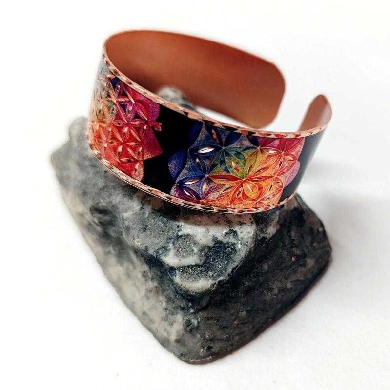 Bakır bilezik - Yaşam Çiçeği Tasarım Bilezik , El işçilikli lüks bilezik Model -6 başlıklı antika/koleksiyon objesi Türkiye menşe’lidir. 2000 ve sonrası dönemine aittir.