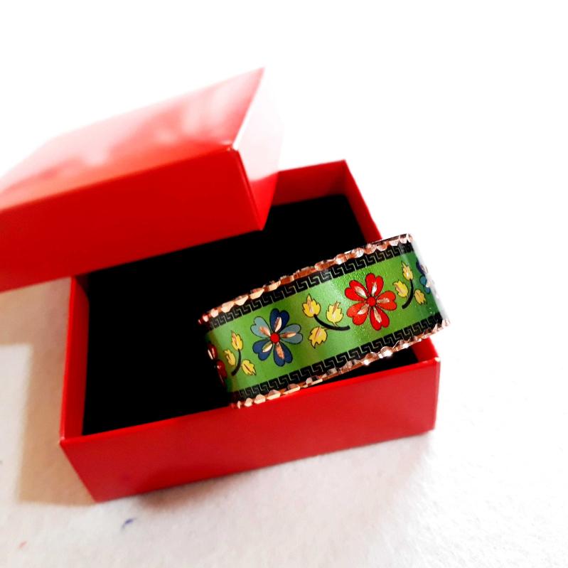 Bakır bilezik , el işçilikli lüks bilezik-bileklik harika Çiçekli model yeşil renk, 1 yıl önce kitantik’te satışa sunulmuştur.