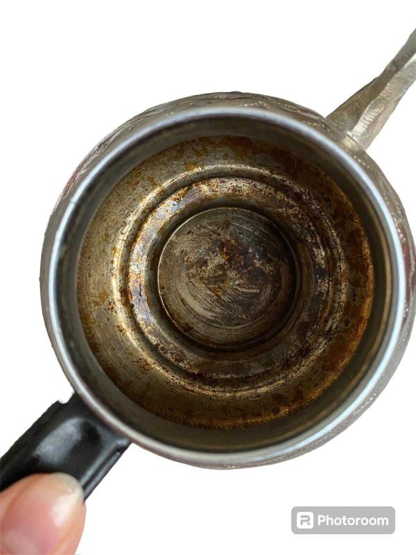 Gaziantep bakırcılar çarşısından alındı işlemeli bakır çaydanlık içinde ve dışında resimlerde de görüldüğü gibi bazı lekeler var tuz ve limon ile temizlemeye çalıştım biraz çıktı kimyasal madde ile temizlemedim.