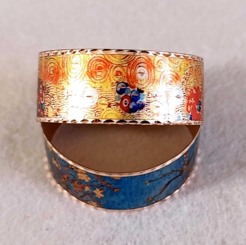 Bakır el işçilikli lüks bilezik -Gustav Klimt - The Kiss - Öpücük 1908 başlıklı antika/koleksiyon objesi Türkiye menşe’lidir. 2000 ve sonrası dönemine aittir.