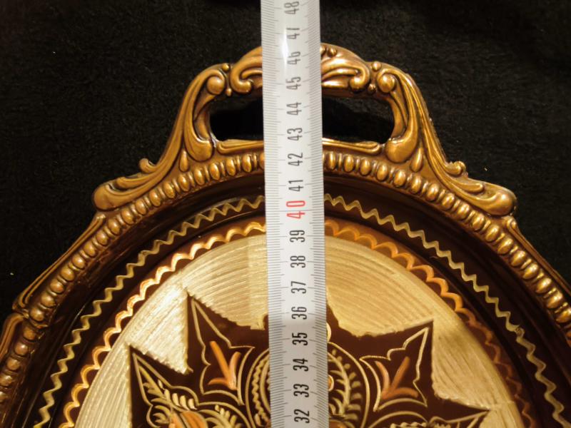 Bakır kalem işçilikli tepsi başlıklı antika/koleksiyon objesi Türkiye menşe’lidir. 2000 ve sonrası dönemine aittir.
