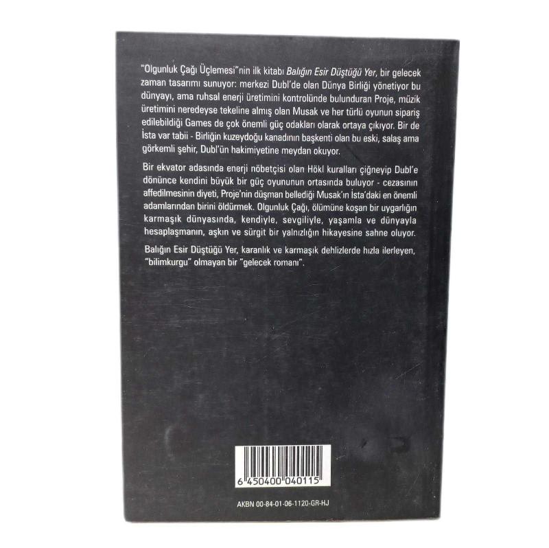 Balığın Esir Düştüğü Yer Cem Akaş ALTIKIRKBEŞ YAYINLARI Olgunluk Çağı Üçlemesi'nin ilk kitabı Balığın Esir Düştüğü Yer, bir gelecek zaman tasarımı sunuyor, merkezi Dubl'de olan Dünya Birliği yönetiyor bu dünyayı, ama ruhsal enerjiyi üretimini kontrolünde bulunduran Proje, müzik üretimini neredeyse tekeline almış olan Musak ve her türlü oyunun sipariş edebildiği Gammes de çok önemli güç odakları olarak ortaya çıkıyor. Bir de İsta var tabii Birliği kuzeydoğu kanadının başkenti olan bu eski, salaş ama görkemli şehir, Dubl'ün hakimiyetine meydan okuyor. Balığın Esir Düştüğü Yer, karanlık ve karmaşık denizlerde hızla ilerleyen, bilimkurgu olmayan bir gelecek romanı. Yayın Tarihi: 21.01.2000 Dil: TÜRKÇE Sayfa Sayısı: 140 Cilt Tipi: Karton Kapak Kağıt Cinsi: 3. Hm. Kağıt Boyut: 13.5 x 19.5 cm