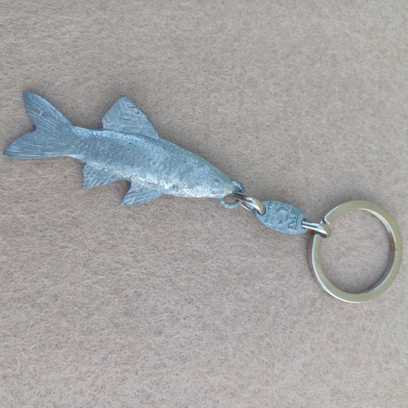 Harika bir Balık Anahtarlik. Üzerinde STG logosu,ay-yildiz ve Turkish Seafood yazisi mevcut. Muhtemel kurşun. Turk Deniz Urunleri Mutfagi'ni tanitmak jcin kurulmus bir olusum icin sinirli sayidz hazirlanmis promosyon anahtarlik. Gercek bir koleksiyonluk,dekoratif obje,anahtarlik,duvar dusu ve hatta bir kolye ucu olabilir. 2.5 cm en, 8 cm anahtarlik uzunluğu HALKA HARİÇ.