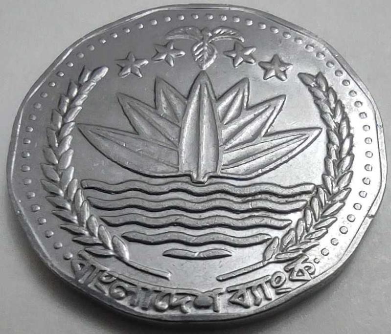 Bangladeş nümismatiğinin en görkemli tasarımlarından biri olan bu 1996 tarihli 5 Taka, ülkenin özgürlük mücadelesini madeni bir formda ölümsüzleştirir. Paranın ön yüzünde (obverse), Savar'daki "Jatiya Sangshad Bhaban" (Ulusal Parlamento Binası) yerine Bangladeş'in bağımsızlık savaşında şehit düşenler anısına dikilen devasa "Jatiyo Smriti Soudho" (Ulusal Şehitler Anıtı) tüm ihtişamıyla betimlenmiştir. Arka yüzünde (reverse) ise Bangladeş'in resmi devlet arması olan, su zambağı (Shapla), çeltik başakları ve dört yıldızla bezeli mühür yer almaktadır. Paslanmaz çelikten üretilen bu sikke, yüksek darp kalitesi ve metalin kendine has gümüşî parlaklığıyla koleksiyonlarda hemen fark edilir. Görseldeki kondisyonuyla anıtın yükselen geometrik katmanlarındaki detaylar ve yazıların keskinliği, parçanın koleksiyon değerini artıran temel unsurlardır. Hem Asya ülkeleri paraları biriktirenler hem de "modern anıtlar" ve "bağımsızlık sembolleri" temalı koleksiyon oluşturan elit koleksiyonerler için bu 1996 baskısı, nümismatik albümlerin en karakteristik parçalarından biri olacaktır.