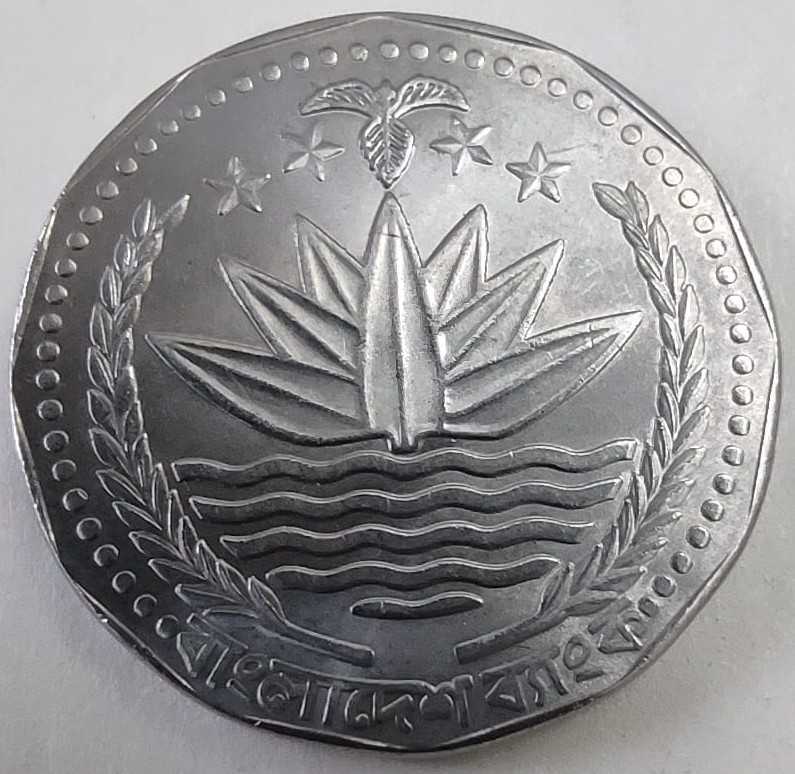 Bangladeş'in özgürlük ruhunu nümismatik bir formda ölümsüzleştiren bu 2008 tarihli 5 Taka, ülkenin en görkemli yapılarından birini koleksiyonunuza taşır. Paranın ön yüzünde (obverse), Savar'da bulunan ve 1971 Bağımsızlık Savaşı'nda hayatını kaybedenlerin anısına dikilen "Jatiyo Smriti Soudho" (Ulusal Şehitler Anıtı) tüm ihtişamıyla betimlenmiştir. Arka yüzünde (reverse) ise Bangladeş'in resmi devlet arması; su zambağı (Shapla), çeltik başakları ve dört yıldızla bezeli mühür yer almaktadır. Paslanmaz çelikten üretilen bu sikke, yüksek darp kalitesi ve metalik yüzey parlaklığıyla dikkat çeker. Görseldeki kondisyonuyla, anıtın geometrik yapısındaki keskin hatlar ve paranın gümüşî dokusu oldukça net bir şekilde korunmuştur. Hem Asya paraları biriktirenler hem de "Mimari Yapılar" ve "Bağımsızlık Anıtları" temalı koleksiyon oluşturan elit koleksiyonerler için bu 2008 baskısı, Bangladeş'in ulusal kimliğini yansıtan estetik bir örnektir.