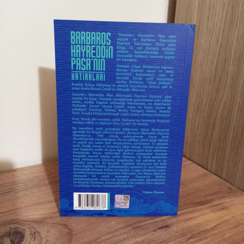 “Gazavat-ı Hayreddin Paşa adını taşıyan ve Barbaros Hayreddin Paşa’nın hatıralarını ihtiva eden kitap, 16. asır Osmanlı tarihinin mühim kaynaklarından biridir. Denizcilik tarihimiz üzerinde kapital bir kaynaktır. Osmanlı Cihan Devleti’nin kaptan-ı deryası (bahriye nazırı ve deniz kuvvetleri kumandanı) olan ve devrinin büyük millî kahramanı sayılan Barbaros, “cihan padişahı” Kanûni Sultan Süleyman’ın emriyle hatıralarını denizci, şair ve yazar dostu Murad Çelebi’ye (Muradi) dikte etti. Gazavat-ı Hayreddin Paşa (Hayreddin Paşa’nın Gazaları) adını taşıyan bu kitap, Osmanlı literatüründe gazavatname tabir edilen türün, verdiği bilginin orijinalliği bakımından, en değerlisidir. Türkçedir. Seyyid Murad Çelebi, sonra bu kitabı nazma da çekmiştir. İstanbul, Vatikan, Berlin, Stuttgart, Kahire, Madrid, Paris, Londra kütüphanelerinde çeşitli yazma nüshaları bulunuyor. Eser, birçok dile tercüme edildi. Barbaros’un hayatında Arapçaya tercüme edildi ve şüphesiz önce Cezayir’de okundu. Bu inanılmaz tarih gerçeğinin hikâyesini, bizzat Barbaros’un ağzından bu kitapta dinleyeceksiniz. Barbaros Hayreddin Paşa’nın Hatıraları’nı, 1965 yılında sadeleştirerek Hayat Tarih Mecmuası’nda yayınlamıştım. Bu on tefrikayı şimdi kitap hâlinde ve çeyrek asır sonra Türk okuyucusuna sunuyorum. O zamanki nesil, büyük merak ve heyecanla takip etmişti. Onların çocukları olan bugünkü neslin de aynı ilgiyi göstereceğini ümit ediyorum. Hatıralarda, Kuzey Afrika’daki Berberi çekişmeleri üzerinde bezginlik verecek tafsilat vardır. Barbaros, bir türlü müstevliye karşı birleşmesini bilmeyen insanlardan çok yakınmış ve acı örnekler vermiştir. Bu kısımlar, bugünün okuyucusu için fazla çekici değildir. Atladım. Sadeleştirmeyi yaparken 16. asır Osmanlı Türkçesinde olmayan kelime ve tabirleri, o çağın zihniyetine aykırı deyimleri kullanmaktan kaçındım. Maksadım, her Türkçe bilen için okunacak bir metin sunmaktır. Gazavat’ın Türkiye kütüphanelerinde mevcut tek harekeli nüshasının faksimilesinin bir kısmını, kitabımın sonuna ekledim. Eski harfleri bilen okuyucu ve tarihçiler, bundan faydalanabileceklerdir.” Yılmaz Öztuna