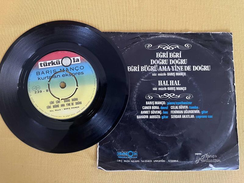 Barış Manço 45 lik plak ‘’Hal hal - eğri büyrü ’’ orijinal dönem baskı Kapak:küçük bir yırtık var . kat izi var Plak:sorun yaratmayacak hafif yüzeysel çizikler var; atlama takılma yok.