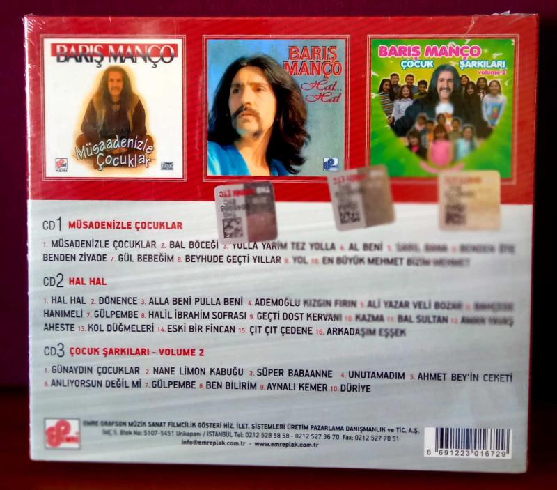 Barış Manço Arşiv Serisi 1 (Box 3 CD) Emre Müzik kullanılmamış yeni CD, orijinal jelatinindedir kargolama pazartesi, çarşamba ve cuma günleridir Box CD İçeriği CD 1. Müsadenizle Çocuklar CD 2. Hal Hal CD 3. Çocuk Şarkıları Volume 2