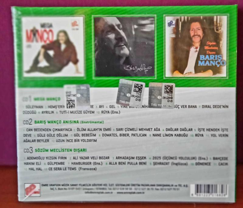 Barış Manço Arşiv Serisi 2 (Box 3 CD) Emre Müzik kullanılmamış yeni CD, orijinal jelatinindedir kargolama pazartesi, çarşamba ve cuma günleridir Box CD İçeriği CD 1. Mega Manço CD 2. Barış Manço Anısına CD 3. Sözüm Meclisten Dışarı