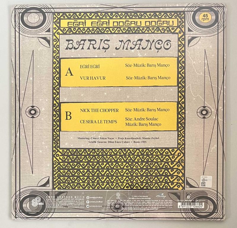 Barış Manço Eğri Eğri Doğru Doğru 45 Devir Maxi Plak (Sıfır Jelatinli)
