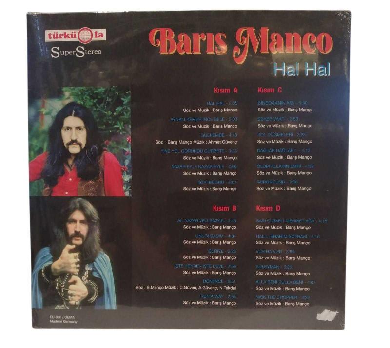 Barış Manço - Hal Hal Türküola Made in Germany 2 Lp Kapalı Ambalajında Kullanılmamış Yeni Basım Üründür LP-1-A 1- Hal Hal 2- Aynalı Kemer Ince Bele 3- Gülpembe 4- Yine Yol Göründü Gurbete 5- Nazar Eyle Nazar Eyle 6- Eğri Büğrü LP-1-B 1- Ali Yazar Veli Bozar 2- Unutamadım 3- Düriye 4- Işte Hendek Işte Deve 5- Dönence 6- Run A Way LP-2-A 1- Binboğanın Kızı 2- Seher Vakti 3- Kol Düğmeleri 4- Dağlar Dağlar 5- Ölüm Allahın Emri 6- Fairground LP-2-B 1- Sarı Çizmeli Mehmet Ağa 2- Halil Ibrahim Sofrası 3- Vur Ha Vur 4- Süleyman 5- Alla Beni Pulla Beni 6- Nick The Chopper