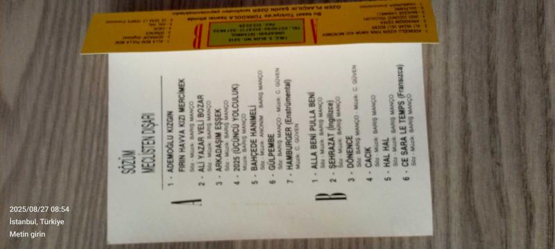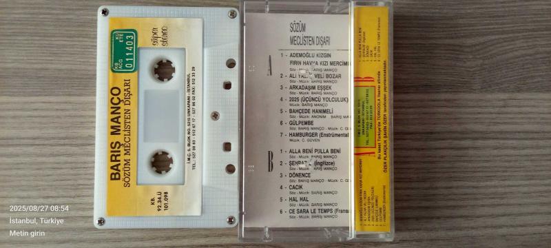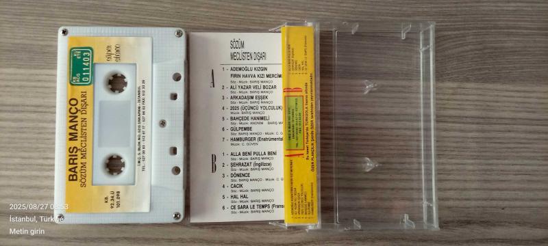 Barış Manço, sözüm meclisten dışarı 2025 (üçüncü yolculuk) başlıklı ürün, Efemera, Müzik, Sinema > Müzik, Plak, Kaset, CD > Müzik Kaseti kategorisi altında İkinci El olarak satılmaktadır.