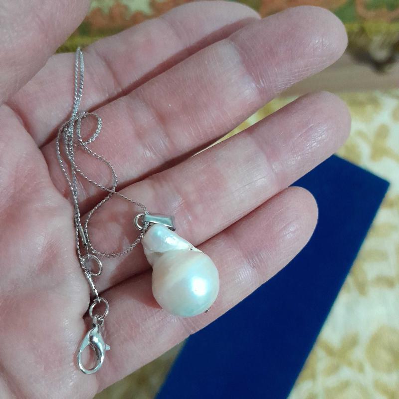 Gerçek Barok inci olup kıl çelik kararmaz zincir kullanılmıştır