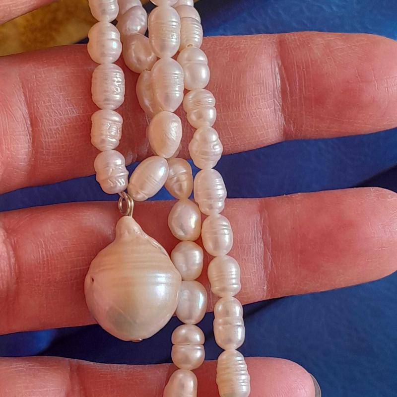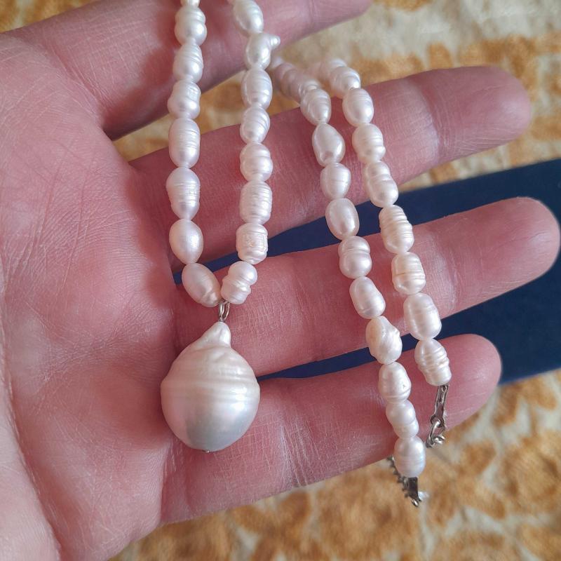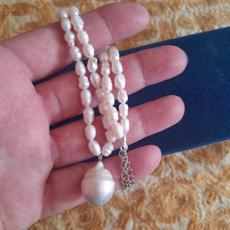 Ortada barok kenarlarda gerçek inci bulunan inci kolyedir. Tamamı gerçek incidir