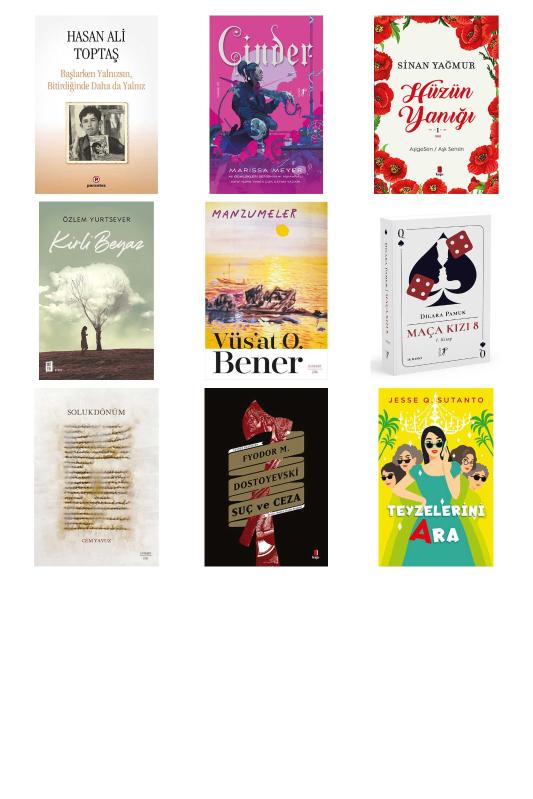 Başlarken Yalnızsın Bitirdiğinde Daha da Yalnız - Cinder - Hüzün Yanığı - Kirli Beyaz - Manzumeler - Maça Kızı 8 - 1. Kitap - Solukdönüm - Suç ve Ceza - Teyzelerini Ara
