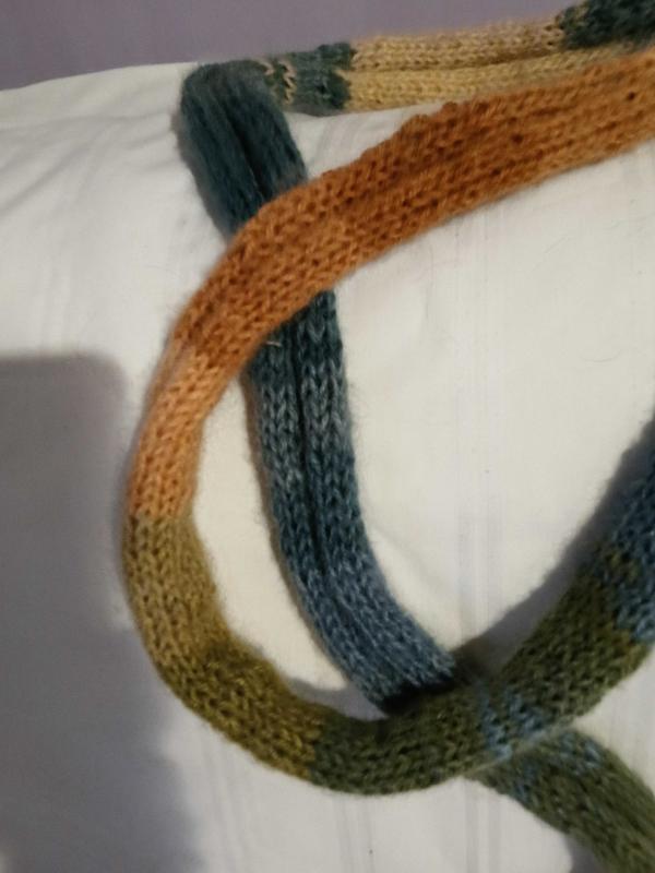 Sonbahar renklerinde batik iple şiş ile örüldü dar uzun atkı sevdiklerinize yada kendinize yılbaşı hediyesi alabilirsiniz ölçüleri (Boyu:2mt) (Eni:9cm)