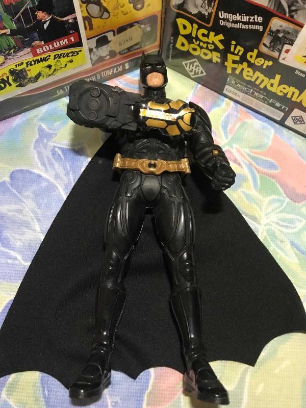 İthal ürün, başı, kolu ve ayakları oynar. Sıkıntısız pelerinli Batman figür. 28cm. uzunluğunda.