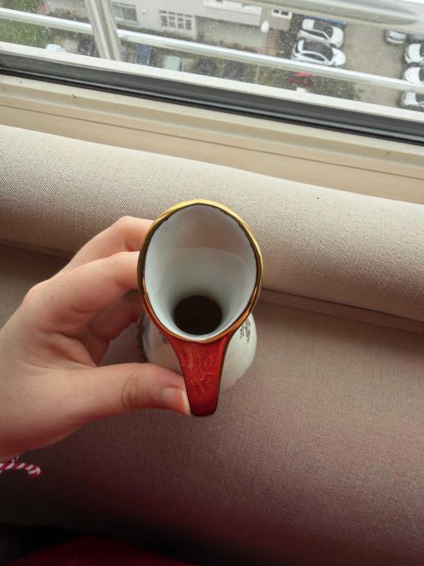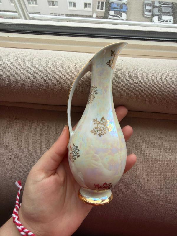 1960-1970’lerden Bavaria porselen. Berlin Brandenburg Kapısı'nın işlendiği, pırıl pırıl ve inci görünümlü, altın yaldızlı kenarlara sahip, zarif bir dekoratif vazo.