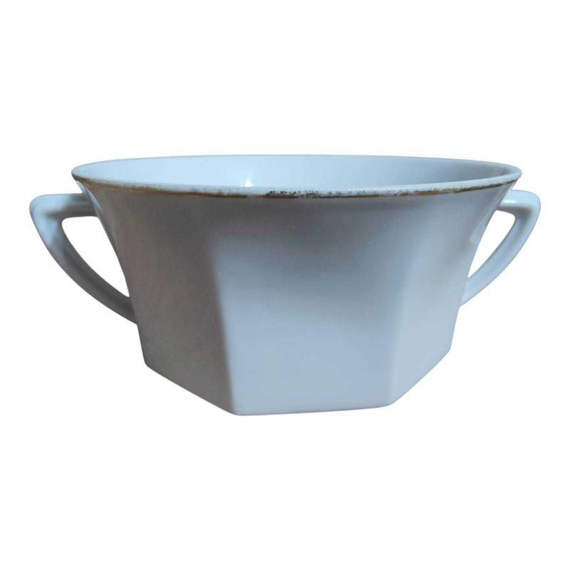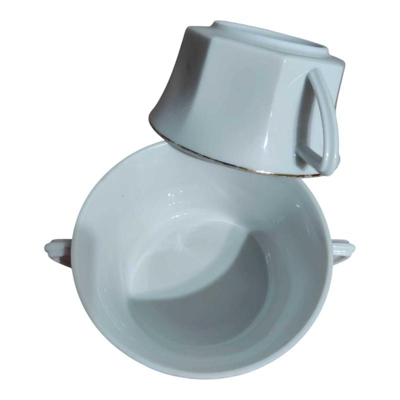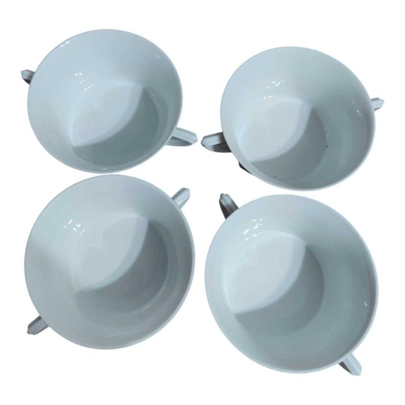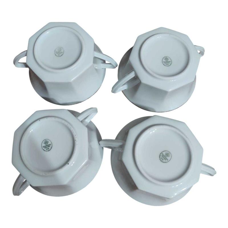 Bavaria Porselen Çift Kulplu Kase Seti 4'lü Çap 11 cm, Yükseklik 5 cm Kullanıma bağlı kenarındaki yaldızlarda silinmeler mevcut ancak kırık , çatlak vs yoktur.