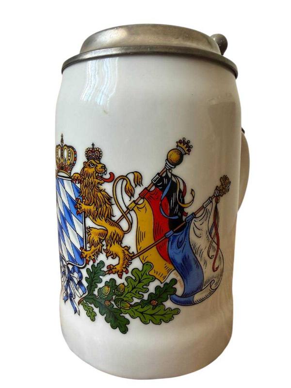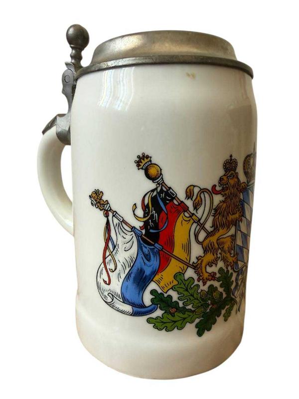Bavyera Armalı Zin Kapaklı Seramik Alman Bira Bardağı TANKART başlıklı antika/koleksiyon objesi Avrupa menşe’lidir. 1950-1999 arası dönemine aittir.