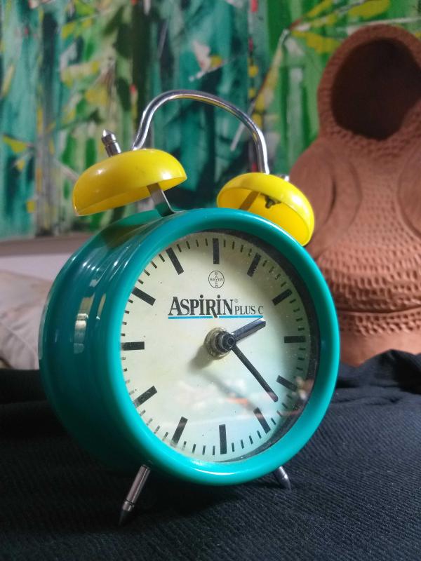 Bayer menşei aspirin yazılı saat başlıklı antika/koleksiyon objesi Türkiye menşe’lidir. 2000 ve sonrası dönemine aittir.