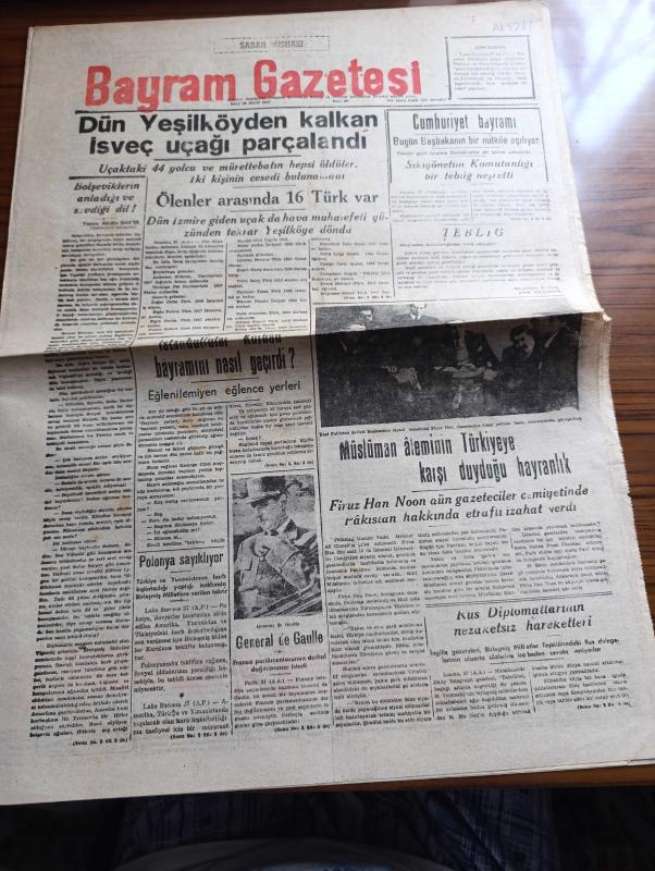 Bayram Gazetesi - 28 Ekim 1947 - Bolşeviklerin Anladığı Ve Sevdiği Dil Yazan Abidin Daver Başmakale - Dün Yeşilköyden Kalkan İsveç Uçağı Parçalandı - Ölenler Arasında 16 Türk Var - Cumhuriyet Bayramı Bugün Başbakan Hasan Saka'nın Nutkuyla Açılıyor - İstanbullular Kurban Bayramını Nasıl Geçirdi - Müslüman Aleminin Türkiye'ye Duyduğu Hayranlık - General De Gaulle Fransız Parlamentosunun Derhal Dağıtılmasını İstedi - Prenses Elizabeth Balayını Ramsey Civarında Geçirecek - İstanbul'un 500. Yıldönümü Yazan M. Ragıp Esatlı - Lüküs Hayat Ses Tiyatrosunda - Hikaye Mahmut Efendi Yazan Bedirhan Çınar - Kızılay Gençlik Kurumu Nasıl Çalışıyor Yazan Fikret Alasya - Kıbrıs'ta Bir Gün Yazan Faruk Fenik - Deli Hüseyin Paşa'nın Kulakları Çınlasın - Konya İntibaları Yazan Ahmet İhsan - Dünya Olayları Makine Devri - Radyo Programı - Airmec Radyo - Türkiye İş Bankası adlı eser, Kitap > Süreli Yayınlar > Gazeteler > Türkiye > Genel > Günlük kategorisinde İkinci El olarak satıştadır.