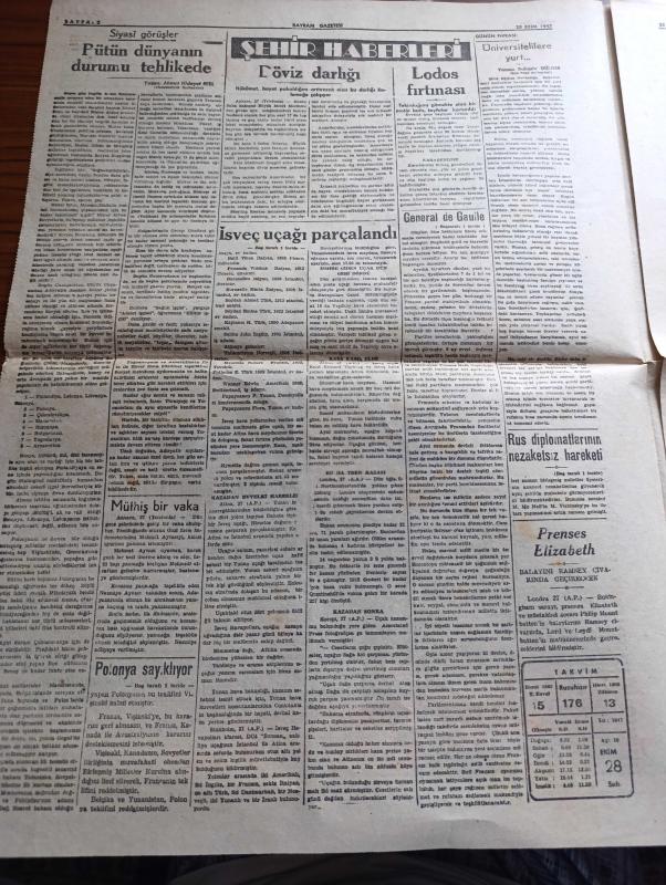 Sayfa Boyutu : 42*58 cm Sayfa Sayısı: 6 Bayram Gazetesi Yıpranma, sararmalar, kupon kesiği ve yırtılmalar zamana bağlı olarak görülebilir Bilgilendirme : Tam takım gazetedir