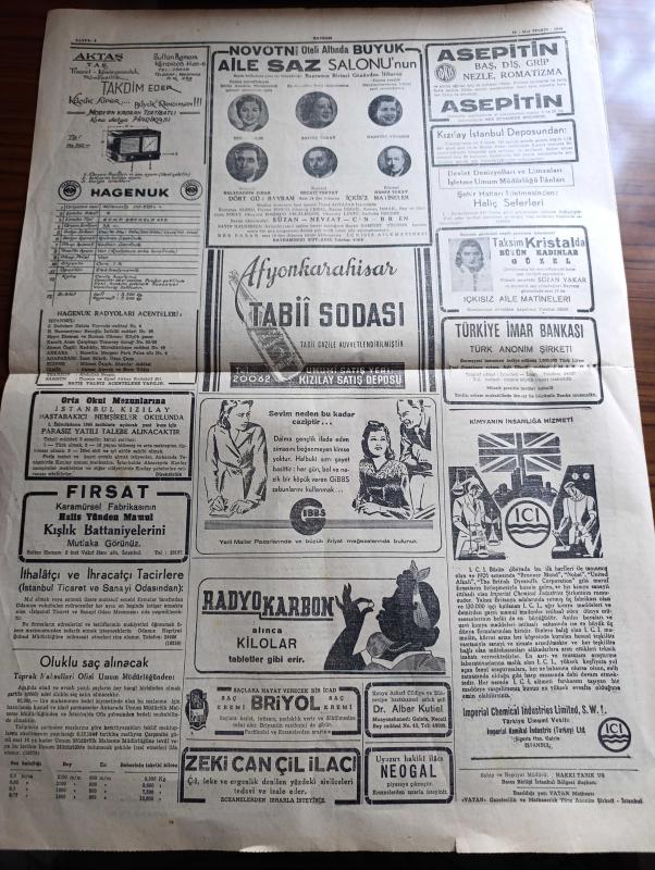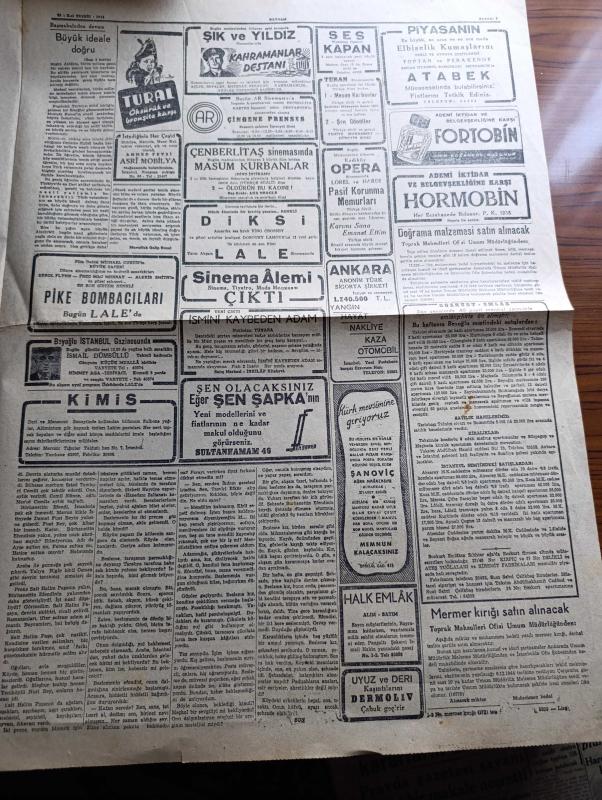 Bayram Gazetesi - 29 İkinciteşrin (Kasım) 1944 - büyük ideale doğru yazan Muvaffak Galip Sunal başmakale - Sovyet Fransız görüşmeleri - Roer ırmağında Alman müdafaa hattına girildi - General De Gaulle bugün Moskova'da bulunacak fotoğraf - harp ateşiyle harap olmak tehlikesinde bulunan Budapeşte şehrinden bir görünüş - merhum Ahmet Mithat'ın hatırası anılacak - Hollanda Almanya topraklarından pay talep ediyor - Ankara muhteliti İstanbul b takımını 2 0 yendi fotoğraf - Bayram gözüyle yazan Hasan Kumçayı - Amerika'dan 135 milyon liralık malzeme alıyoruz- beslemenin aşkı yazan Mahmut Yesari - Bayram günlerinde ne kesilir yazan Burhan Felek - İsfendiyar Esat Kadaster - İsmail dümbüllü Beyoğlu İstanbul Gazino'sunda - sinema alemi mecmuası çıktı - kahramanlar destanı şık ve yıldız sinemalarında - ses Tiyatrosu opereti kapan - Lorel ve Hardy pasif korunma memurları Kadıköy Opera sinemasında - Hamiyet Yüceses Selahattin Pınar Hamdi Tokay Zehra bilir Novotni oteli altında aile saz salonunda - adlı eser, Kitap > Süreli Yayınlar > Gazeteler > Türkiye > Genel > Günlük kategorisinde İkinci El olarak satıştadır.
