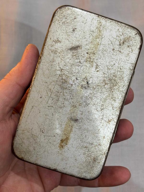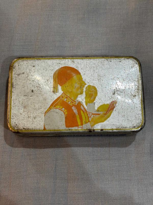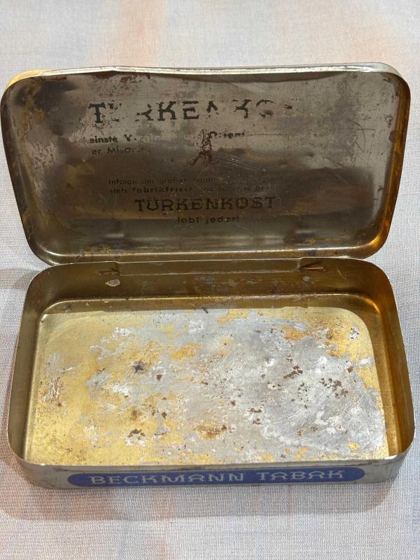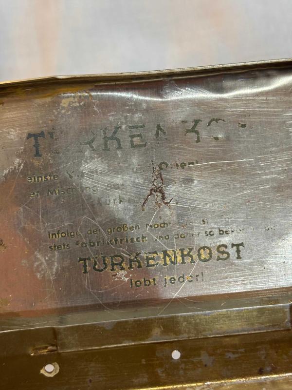 Türkenkost" (Türk Tadı) markalı antika bir metal tütün veya sigara kutusu
