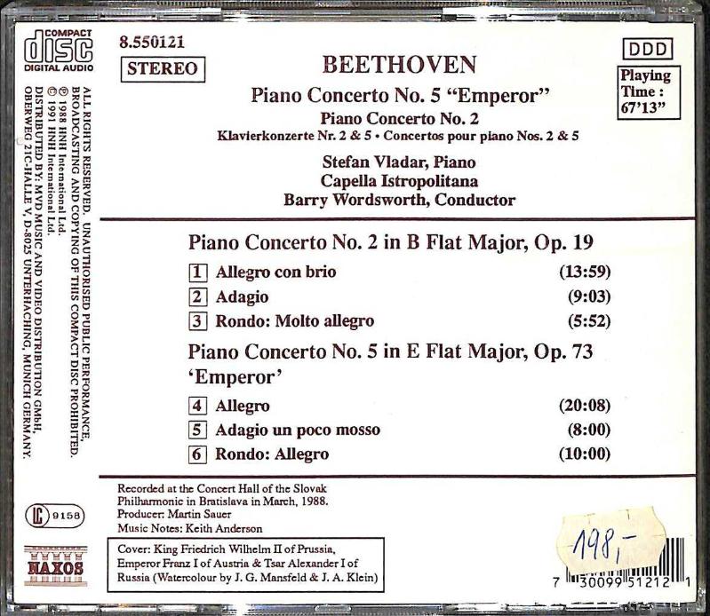 Beethoven : Stefan Vladar, Capella Istropolitana, Barry Wordsworth - Piano Concerto No. 5 "Emperor" / Piano Concerto No. 2 CD (İkinci El) CD3932, en son 16 gün önce güncellenmiştir.
