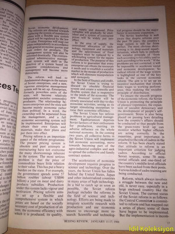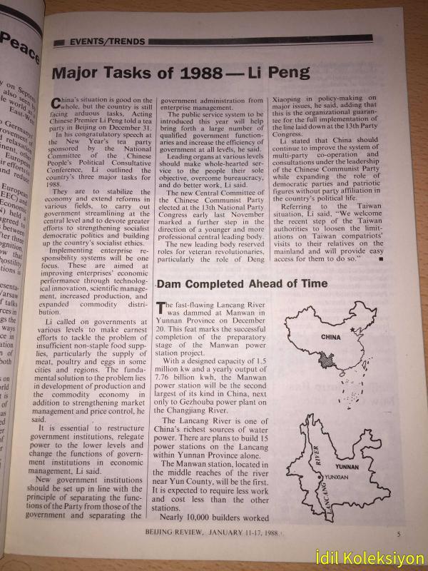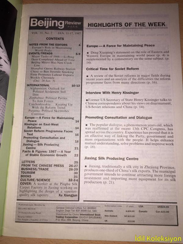 Beijing Review : A Chinese Weekly of News and Views - No.2 January 1988 - İngilizce Dergi (Europe's Role in Maintaining World Peace - Major Tasks of 1988 , Li Peng Dam Completed Ahead of Time Beijing Metro Has New Circle Line - Shangai Opens Railway Station - China to Ban Juvenile Smoking Firm Promotes Labour Exports Weekly Chronicle - Afghanistan : Outlook for Political Settlement Still Dim - Zimbabwe : Political Parties To Join Forces - Czechoslovakia : Keeping Up With the Reform Trend - Panama : Political Skirmishes Continue - Europe : A Force for Maintaining Peace - Kissinger on East-West Relations - Soviet Reform Programme Faces Test - Promoting Consultation and Dialogue)