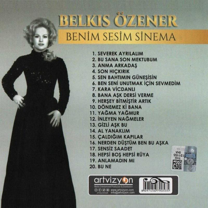 Belkıs Özener - Benim Sesim Sinema CD SIFIR JELATİNLİ Yurtiçi veya Aras kargo ile gönderilecektir. Severek Ayrılalım - Söz-Müzik : Orhan Gencebay Bu Sana Son Mektubum - Söz-Müzik : Suat Sayın Anma Arkadaş - Söz-Müzik : Selahattin Sarıkaya Son Hıçkırık - Söz : Sadık Şendil , Müzik : Şekip Ayhan Özışık Sen Bahtımın Güneşisin - Söz: Emin Gündüz Müzik : Halil Yenilmez Ben Seni Unutmak İçin Sevmedim - Söz : Behlül Pektaş, Müzik : Amir Ateş Kara Vicdanlı - Söz-Müzik : Vedat Yıldırımbora Bana Aşk Dersi Verme - Söz-Müzik : Suat Sayın Her şey Bitmiştir Artık - Söz: Yusuf Kaya Müzik : Hasan İbrahim Özoral Dönemez ki Bana - Söz: Fikret Şenes Müzik : Addis Harmandian Yağma Yağmur - Söz-Müzik :Günay Nurkaya İnleyen Nağmeler - Söz-Müzik : Zeynettin Maraş Gizli Aşk Bu - Söz-Müzik : Zeynettin Maraş Al Yanaklım - Söz: Karacaoğlan Müzik : Mustafa Alpagut Çaldığım Kapılar - Söz: Mehmet Erbulan Müzik : İ. Nedim Saatçi Nerden Düştüm Ben Bu Aşka - Söz-Müzik : Sabri Özdene Sensiz Saadet - Söz-Müzik: Mesut Yaşar Güvenir Hepsi Boş Hepsi Rüya (Düet : Alaaddin Şensoy) Söz-Müzik : Ziya Azbazdar Anlamadın mı (Düet : Alaaddin Şensoy) Söz-Müzik : Ziya Azbazdar Bu Ne - Söz: Fikret Şenes