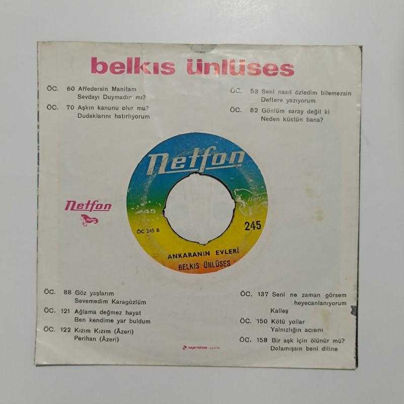 şarkıcı/grup-Belkıs ÜNLÜSES şarkılar -Lambaya püf de - Ankaranın evleri tür -thm baskı/press - plak -7-7,5/10 kapak -8/10 MPN no -ÖC-245 bilgi -